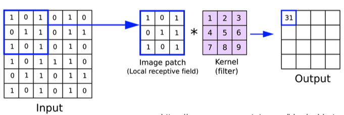 작은 필터(또는 커널) 사용하여 입력 이미지에 대해 합성곱 연산 수행