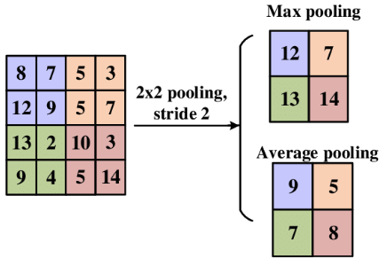2. 평균 풀링: 풀링 영역 내의 평균값 선택