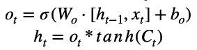 Ot는 출력 게이트의 활성화값, ht는 현재 은닉 상태