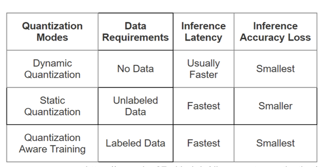 | 정적 양자화(Static Quantization) | 동적 양자화(Dynamic Quantization) | 훈련 중 양자화(Quantization-aware Training, QAT) | |